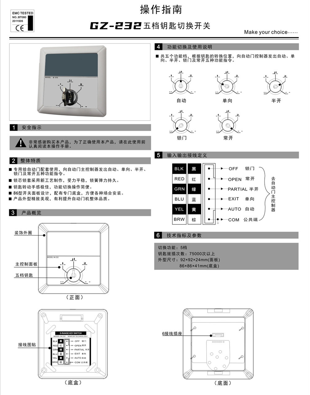 五档钥匙切换开关GZ-232