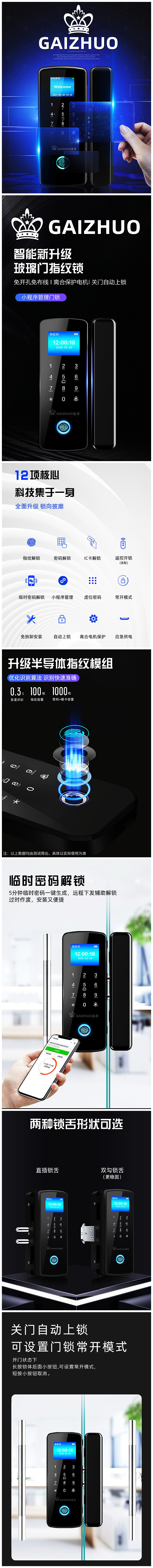 盖卓508玻璃门指纹锁免开孔
